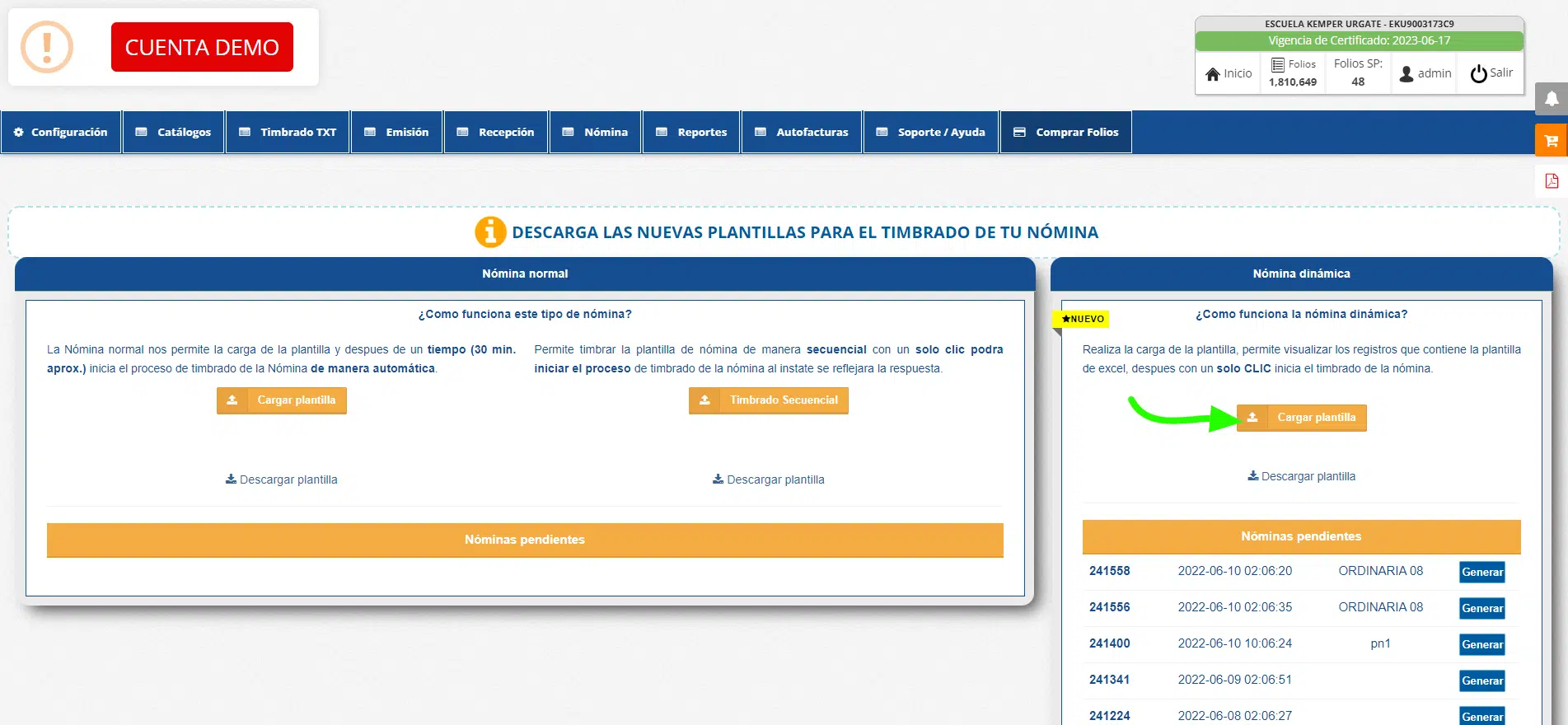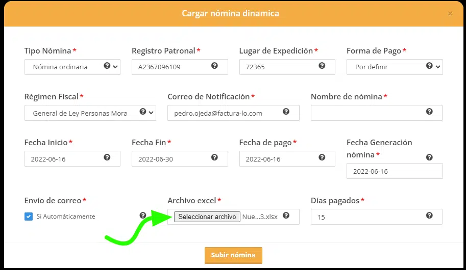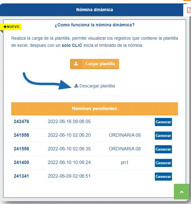 *En nuestro Demo, descarga primero la plantilla de nómina y captura los datos que te pide.