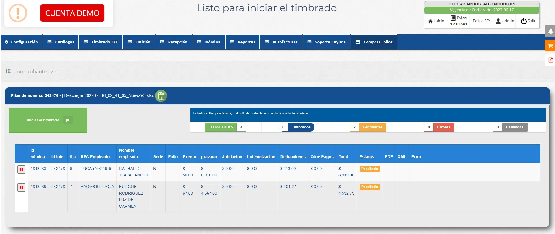 El Sistema te dará el resultado de los recibos que se timbraron y los que no, con un informe detallado del motivo.